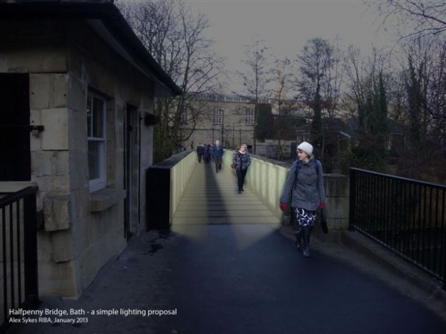 For the future we would like to see adequate signage from the station to Widcombe, particularly signs directing passengers to the rear exit from the station, a less forbidding aspect to the tunnels under the railway line, and improved lighting on Halfpenny Bridge. The CGI (in gallery above) by Architect Alex Sykes shows how low-energy LEDs might make the bridge a safer and more attractive environment at night.