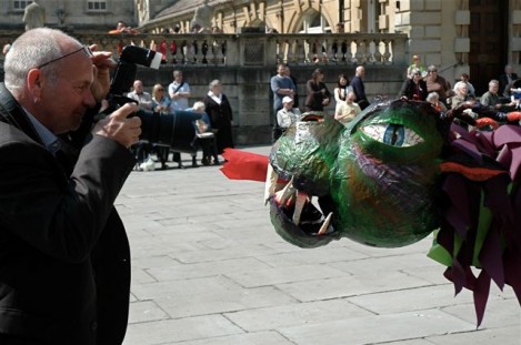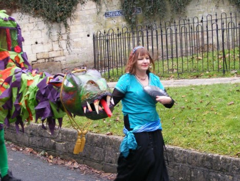 If Marshfield could do it why not Widcombe? Recruitment of performers and musicians built to a frenzy over the Autumn period, aided by a stirring talk from Britain’s top mumming expert, Doc Rowe, at the Widcombe Association October meeting. Script writing and practices miraculously occurred, with the first performance being unleashed on New Year’s Day 2006.
