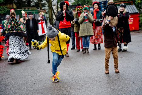 The basic Mummers story is easy to tell. A ‘head man’ makes space for the players and introduces some heroes. They have a fight and one is killed. A Doctor and his boy are called in to find a cure. After some small adventure a cure is brought but the Doctor wants to charge too much. King George takes matters into his own hands to cure his friend/enemy and all ends happily.